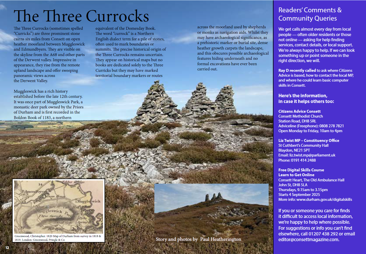 NOTE: THIS WAS ORIGINALLY IN THE PRINT EDITION, CONSETT MAGAZINE: August 2025 – Double Page Spread with The Three Currocks Article.