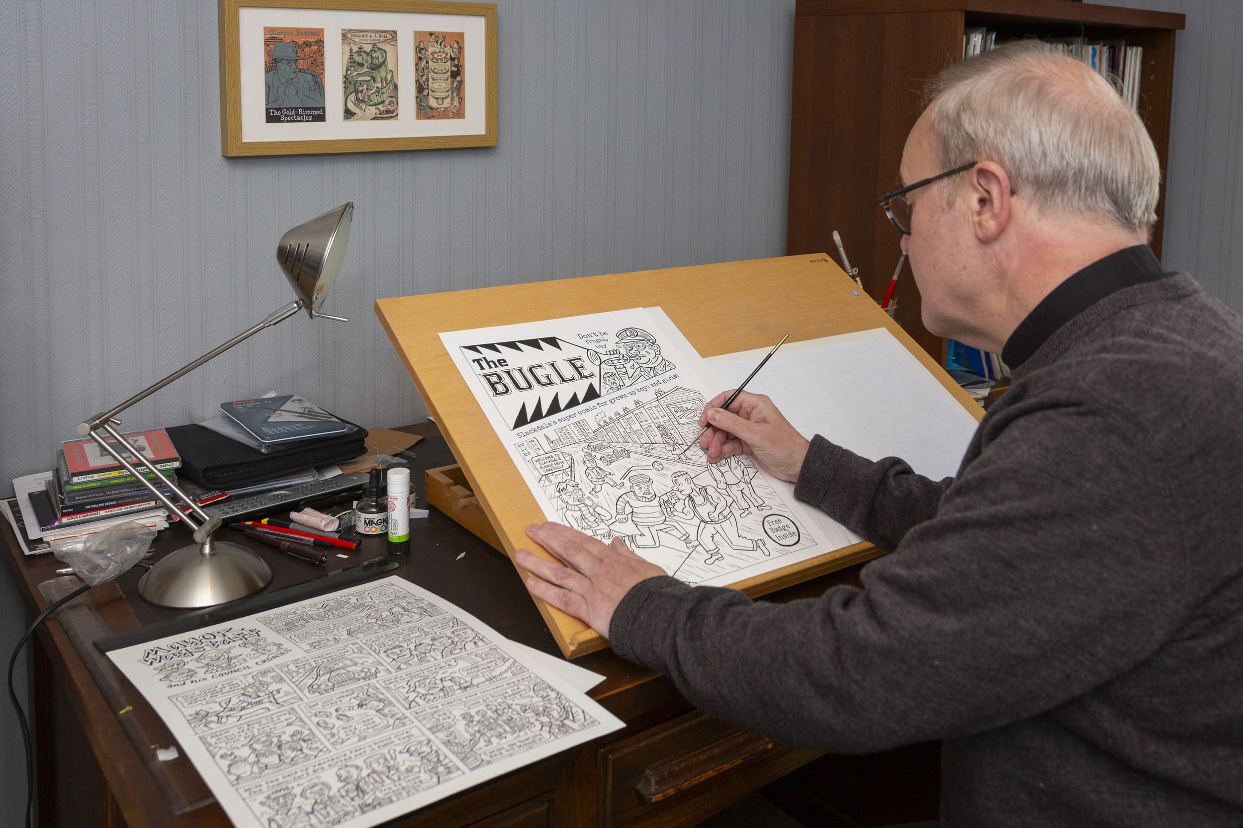 He recently collaborated with local artist Phil Bartle, holding a joint exhibition at The Heart, Consett and is now collaborating on a joint comic project which will be called The Bugle.