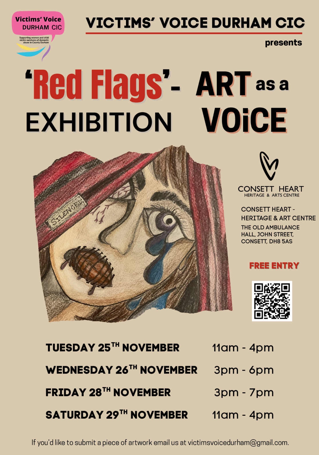 Local community interest company Victims’ Voice Durham CIC is marking the date by launching its first art exhibition, Red Flags – Art as a Voice, which highlights the often unseen and invisible abuse many women endure in controlling, coercive relationships.